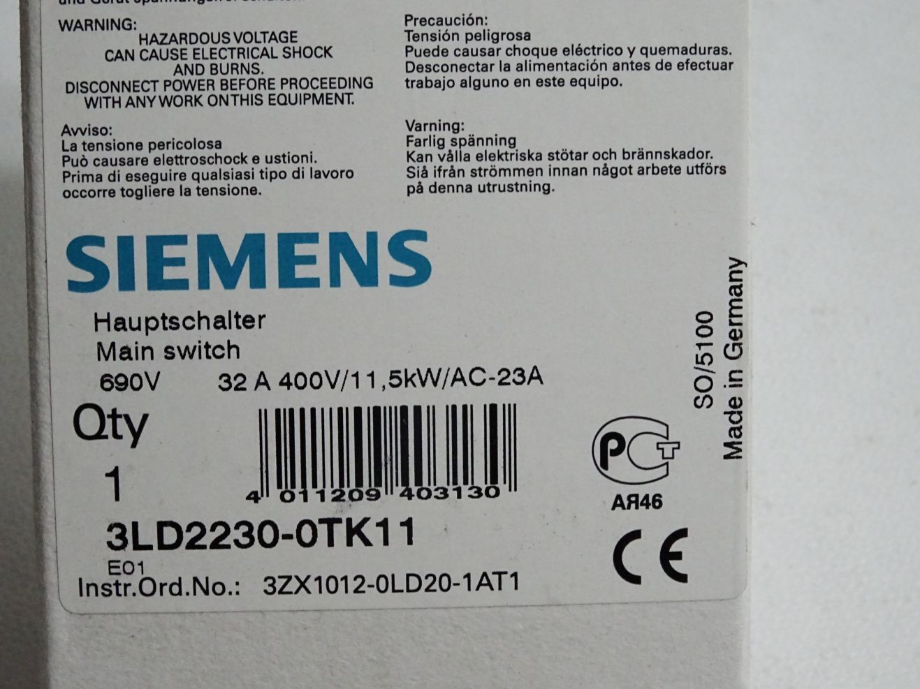 Siemens Hauptschalter 3LD2230-0TK11 / Neu OVP