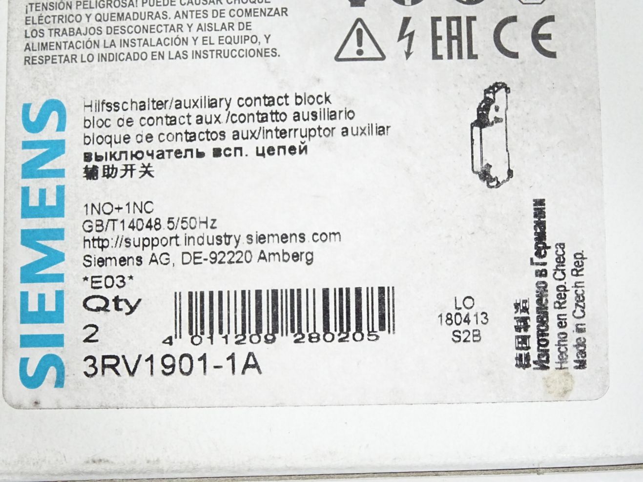 Siemens Hilfsschalter 3RV1901-1A / Inhalt:2 Stück / Neu OVP