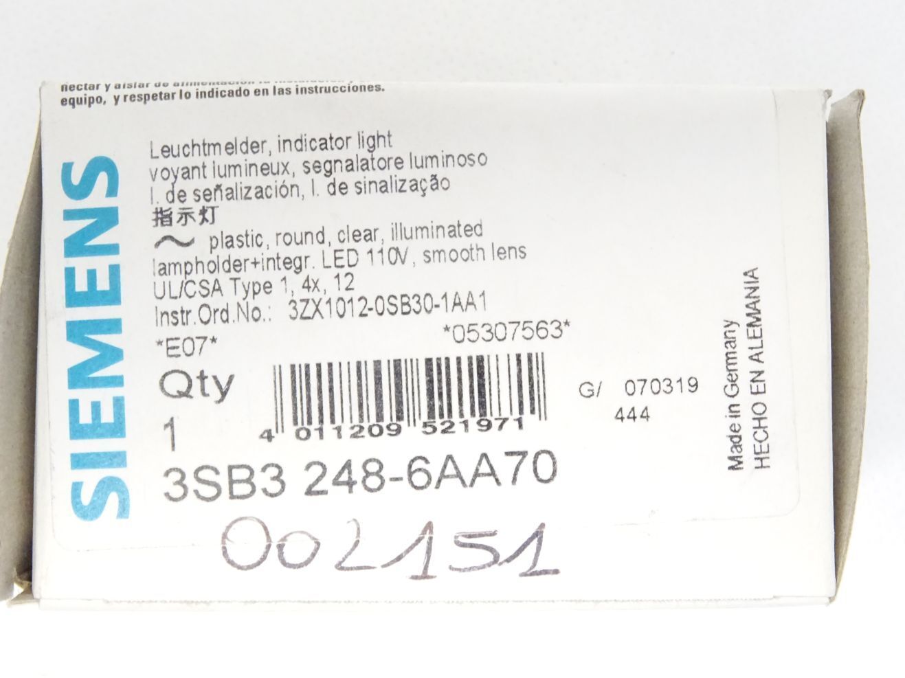 Siemens Leuchtmelder / 3SB3248-6AA70 mit 3SB3400-1QE / Neu OVP