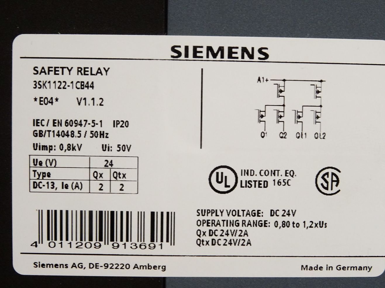 Siemens Safety Relay 3SK1122-1CB44 / Neu