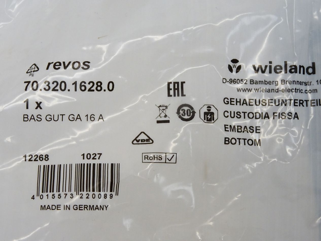 Wieland 70.320.1628.0 Gehäuseunterteil revos BAS GUT GA 16 A / Neu OVP