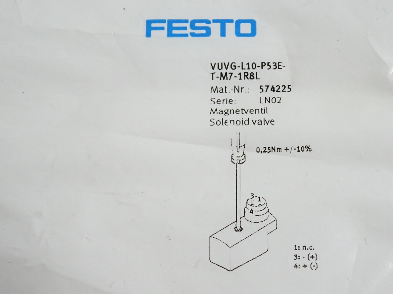 Festo 574225 VUVG-L10-P53E-T-M7-1R8L Magnetventil / Neu OVP