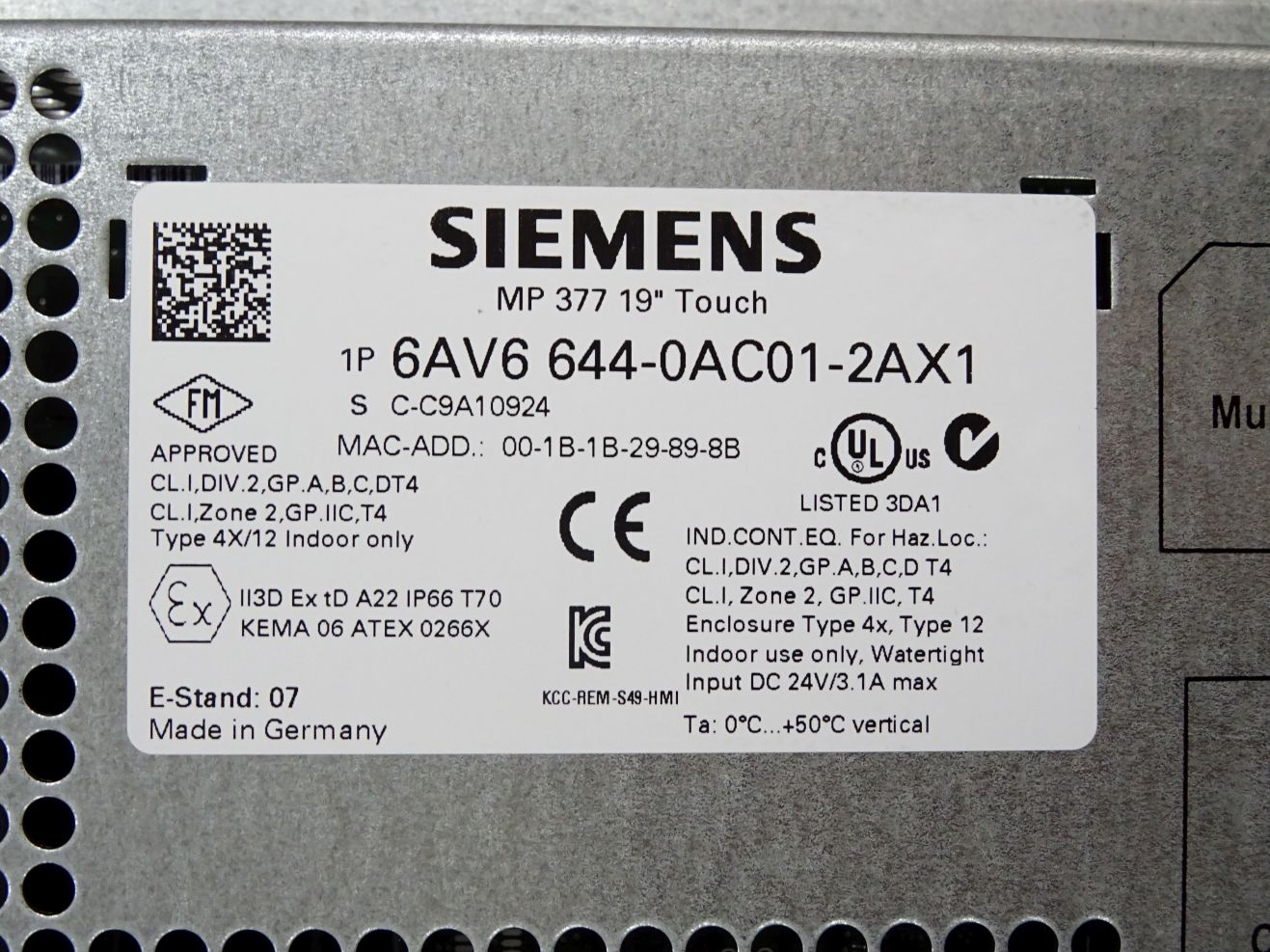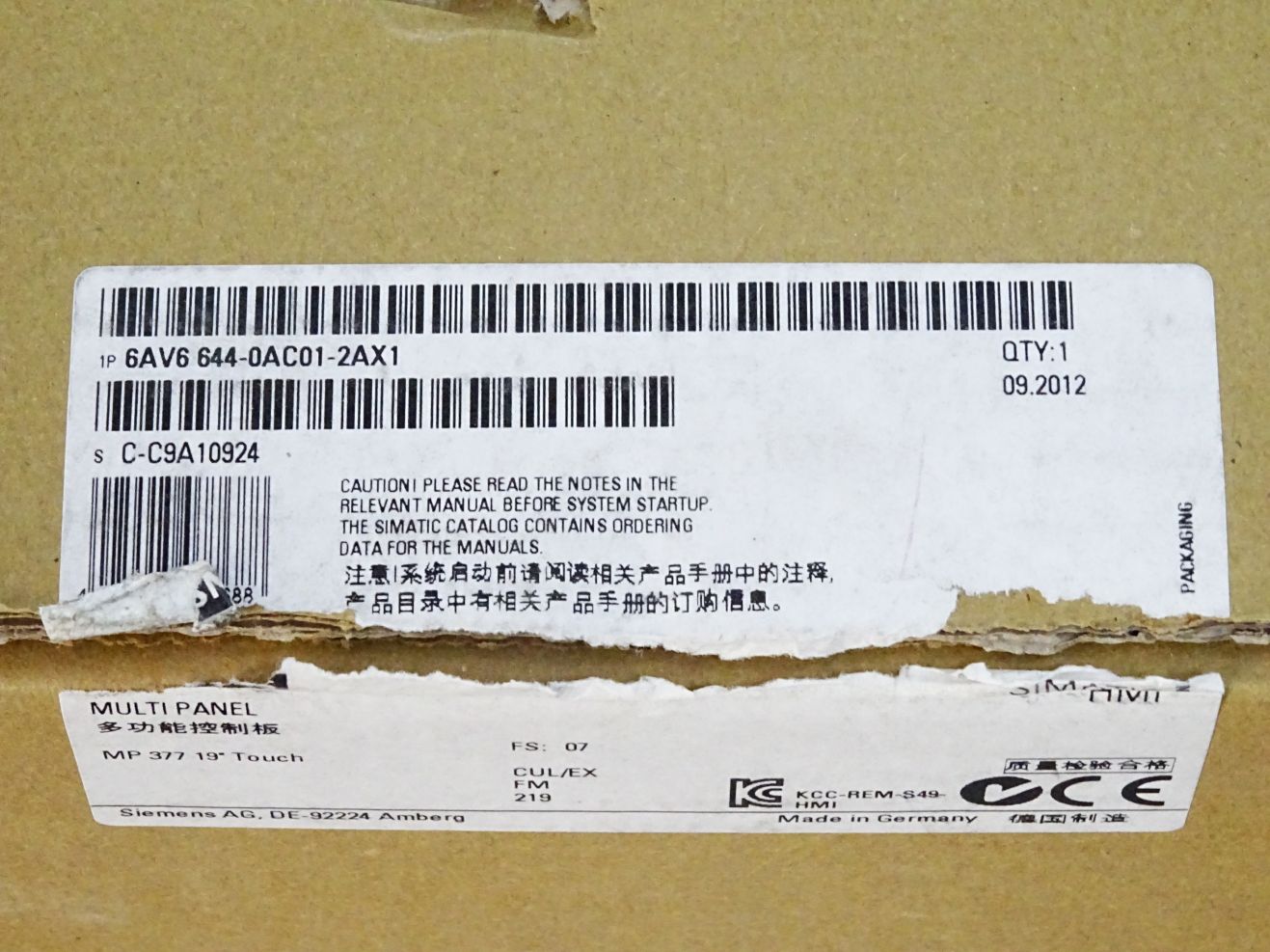 Siemens Multipanel MP377 19" 6AV6644-0AC01-2AX1 6AV6 644-0AC01-2AX1 / Neu OVP
