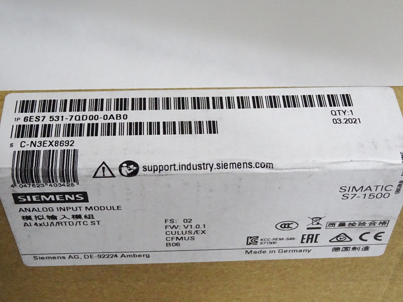 Siemens S7-1500 AI 6ES7531-7QD00-0AB0 6ES7 531-7QD00-0AB0 Neu OVP versiegelt