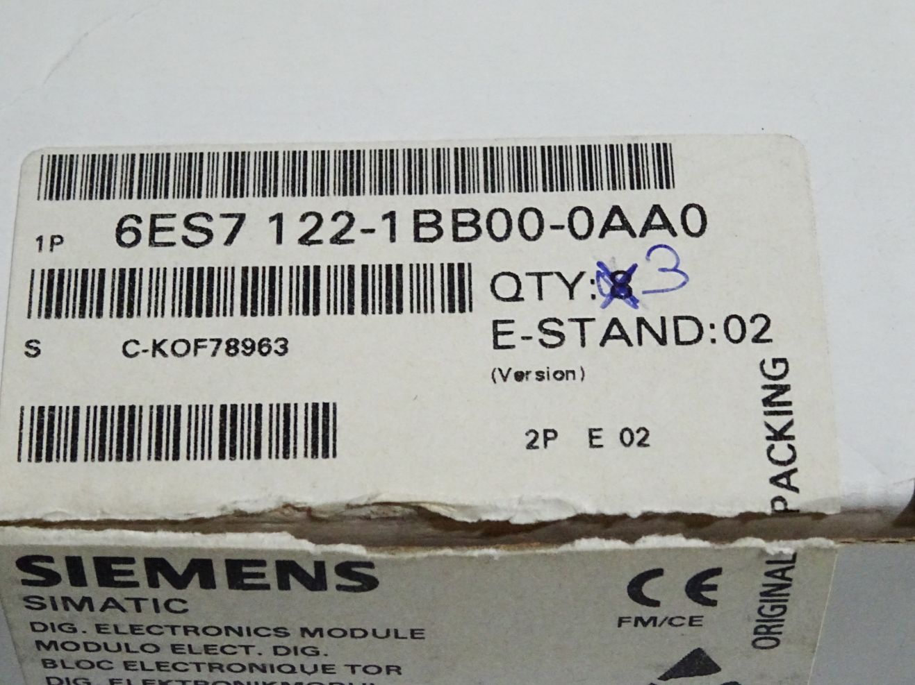 Siemens 6ES7122-1BB00-0AA0 6ES7 122-1BB00-0AA0 / Inhalt:3 Stück Neu OVP