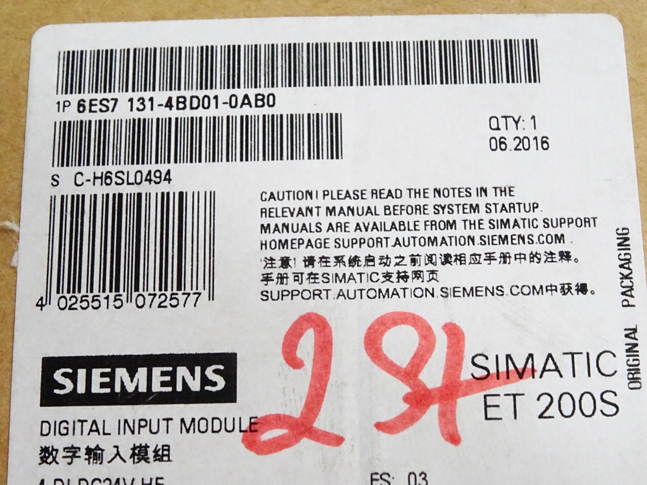 Siemens ET200S 6ES7131-4BD01-0AB0 6ES7 131-4BD01-0AB0 Inhalt:2 Stück Neu OVP