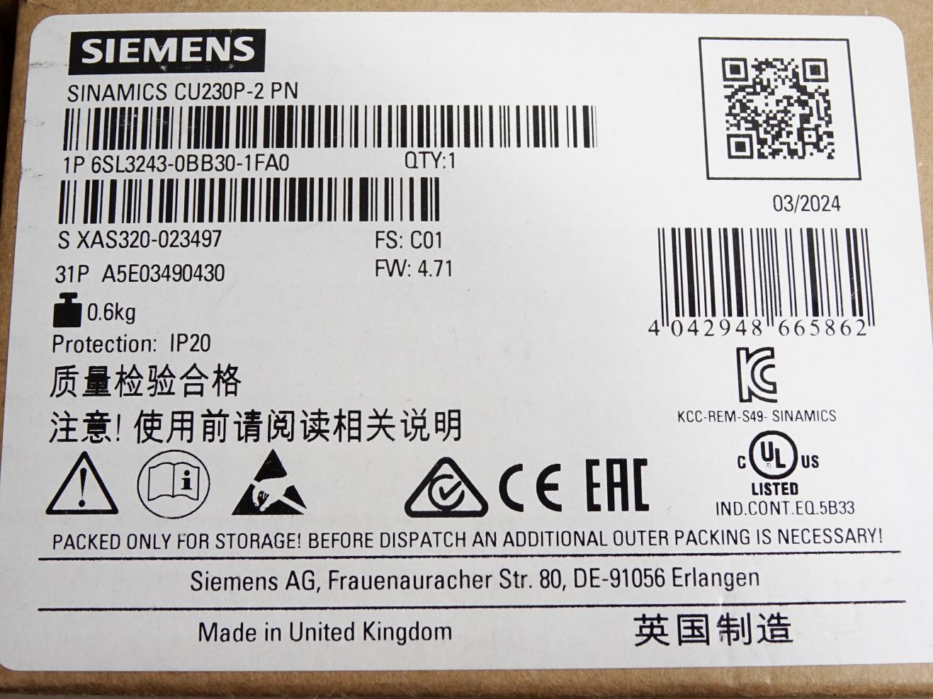 Siemens Sinamics CU230P-2 PN 6SL3243-0BB30-1FA0 / Neu OVP