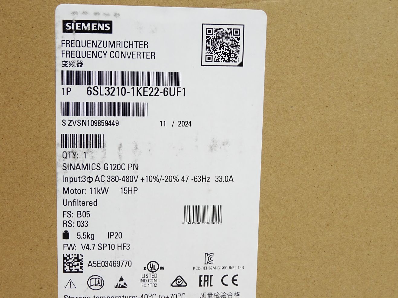 Siemens Sinamics G120C PN 11kW 6SL3210-1KE22-6UF1 Neu OVP