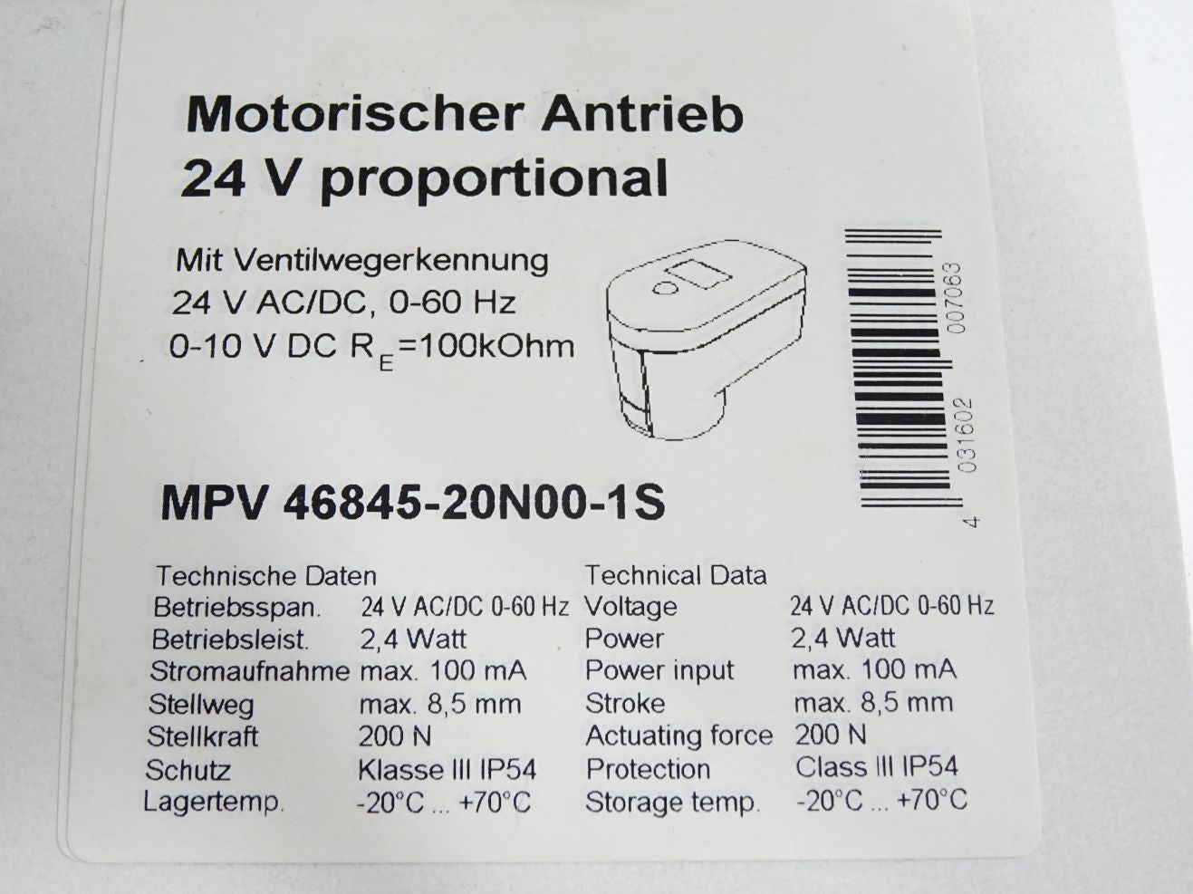 Moehlenhoff Motorischer Antrieb 24V proportional MPV 46845-20N00-1S / Neu OVP