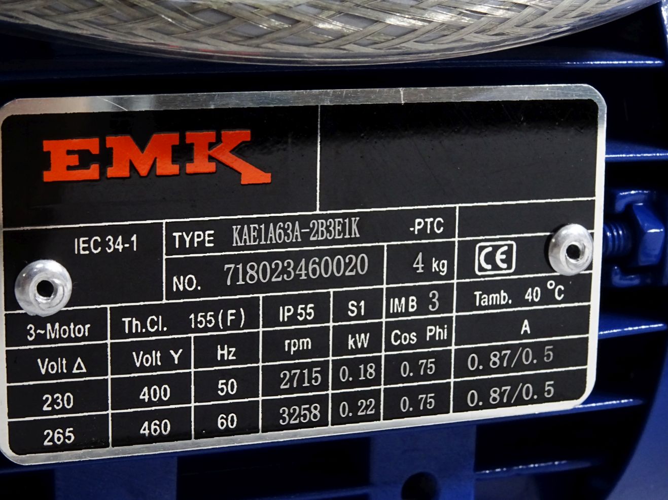 EMK Drehstrommotor KAE1A63A-2B3E1K -PTC 2715 rpm 0.18kW / Unbenutzt