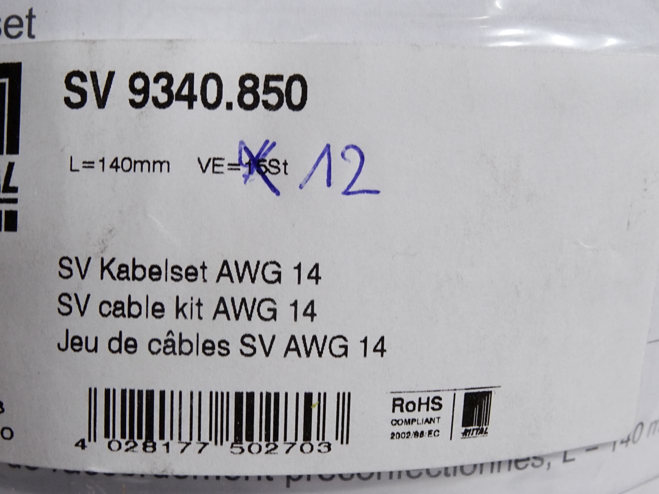 Rittal SV9340.850 Kabelset AWG 14 L: 140 mm v c/ Inhalt:12 Stück / Neu OVP