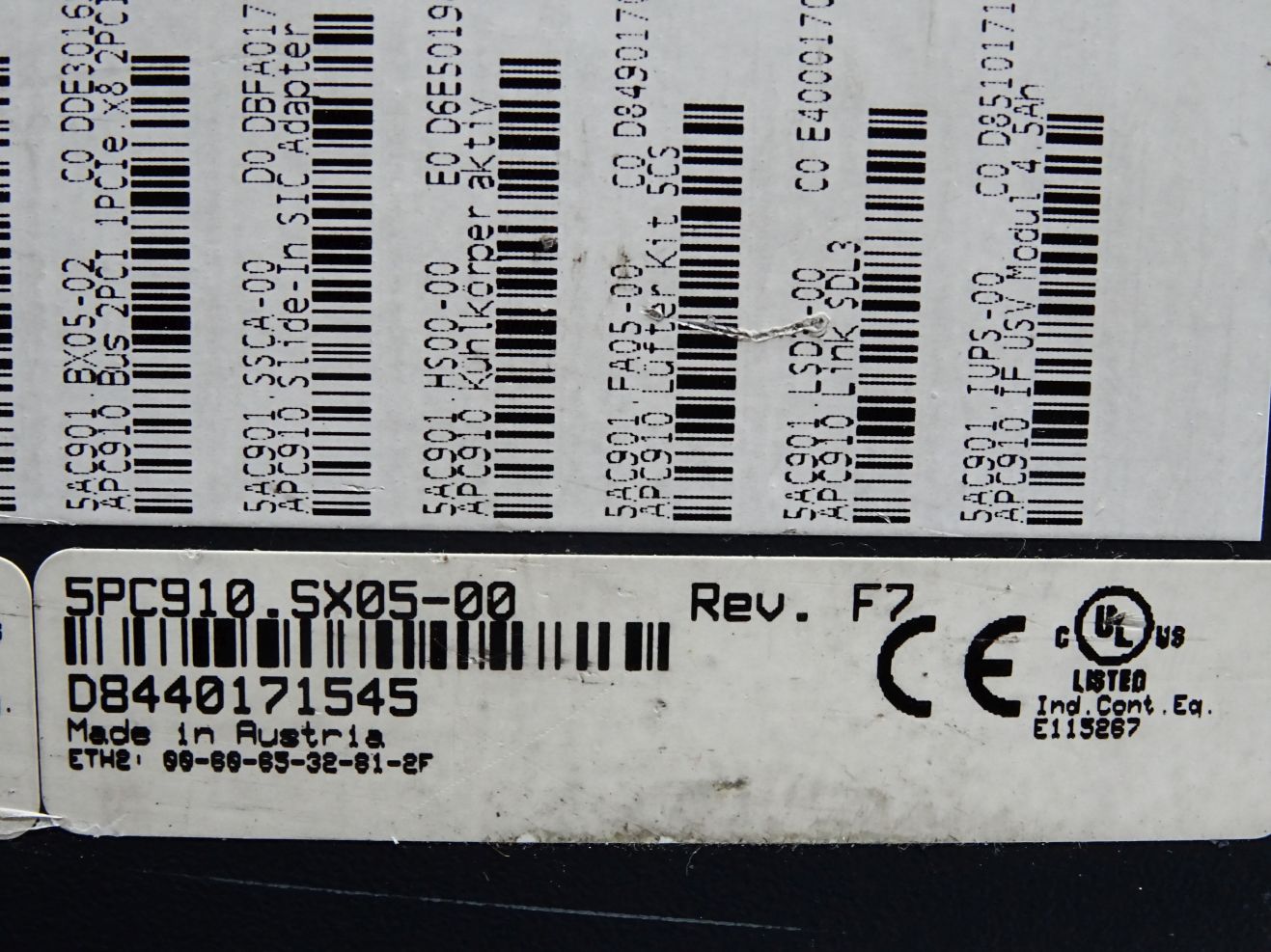 B&R 5PC910.SX05-00 Rev.F7 ohne Betriebsystem 5-Slot APC910 Systemeinheit