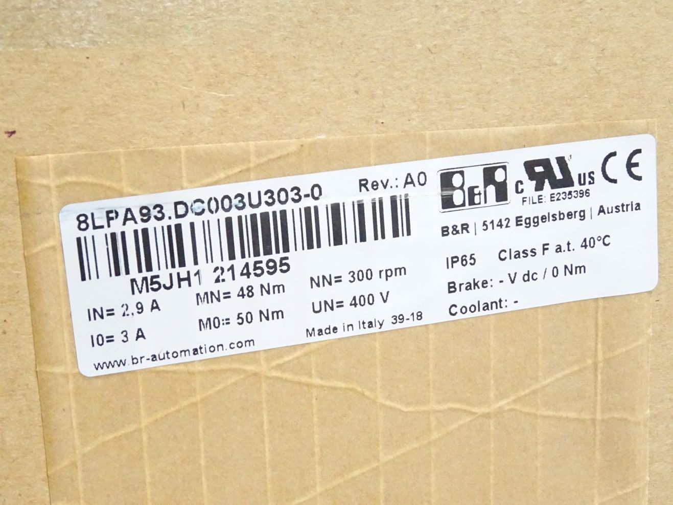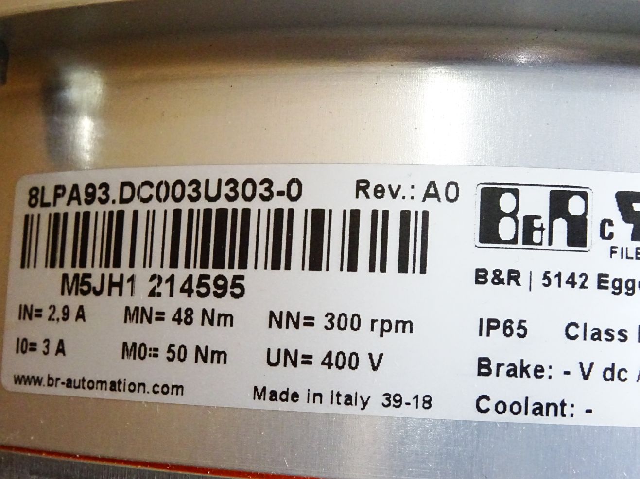 B&R Synchron-Motor 8LPA93.DC003U303-0 Rev.A0 300rpm 400V 1.5kW max1200rpm / Neu