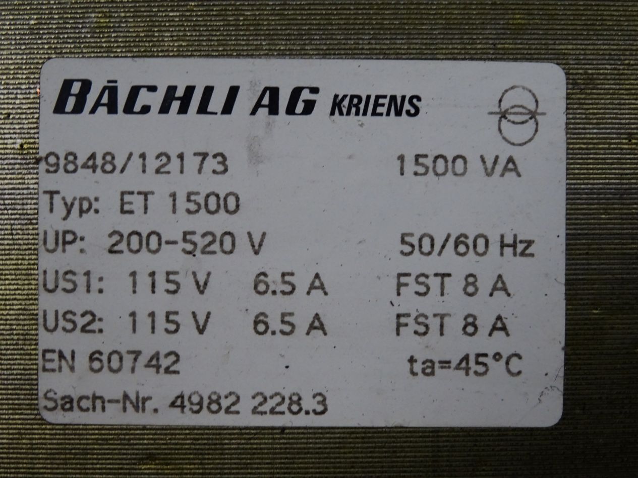 Bächli ET1500 200-520V auf 115V 6.5A 4982228.3 Trafo Transformator 1500VA