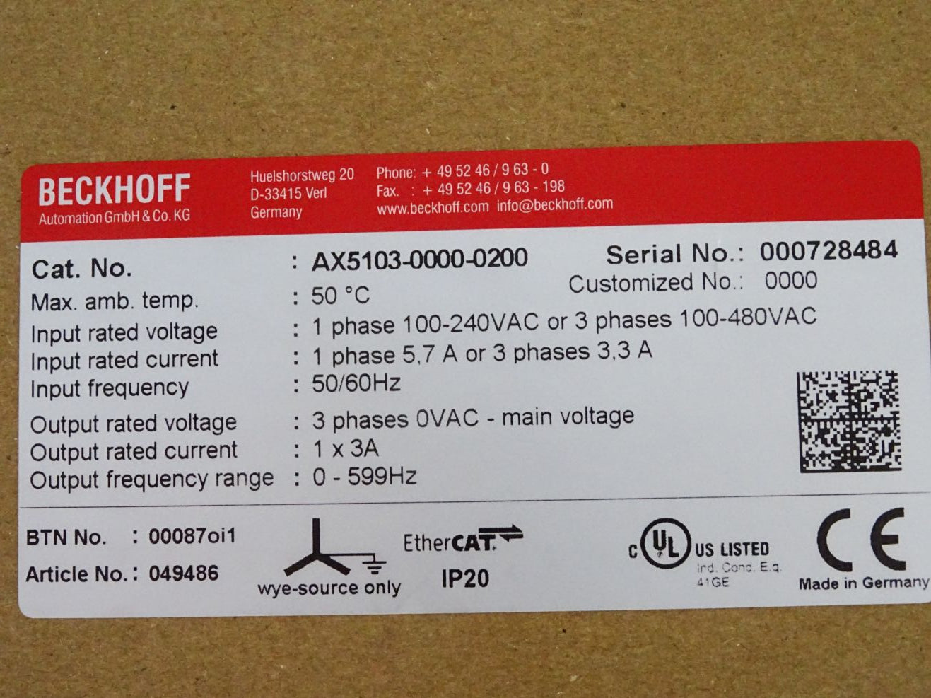 Beckhoff AX5103-0000-0200 Digital Servoverstärker 1-kanalig / Neu OVP versiegelt