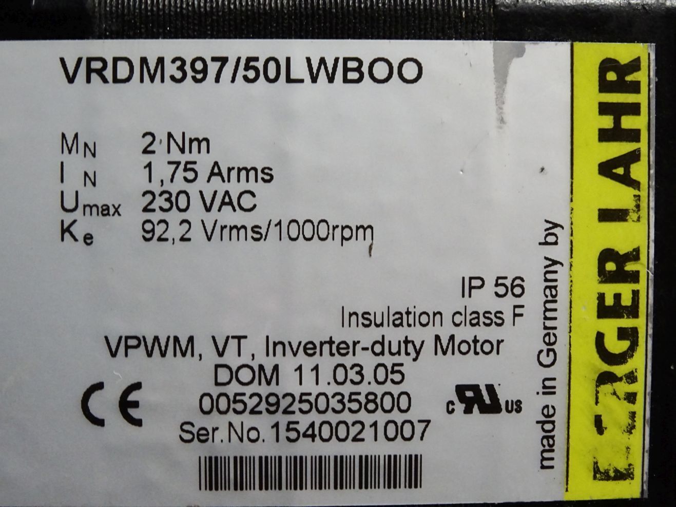 Berger Lahr VRDM397/50LWBOO Schrittmotor 92,2Vrms/1000rpm