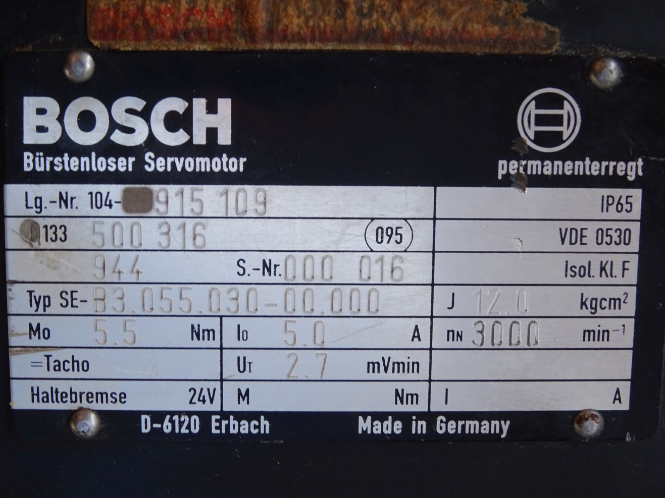 Bosch Bürstenloser Servomotor 0133500316 SE-B3.055.030-00.000 3000min-1