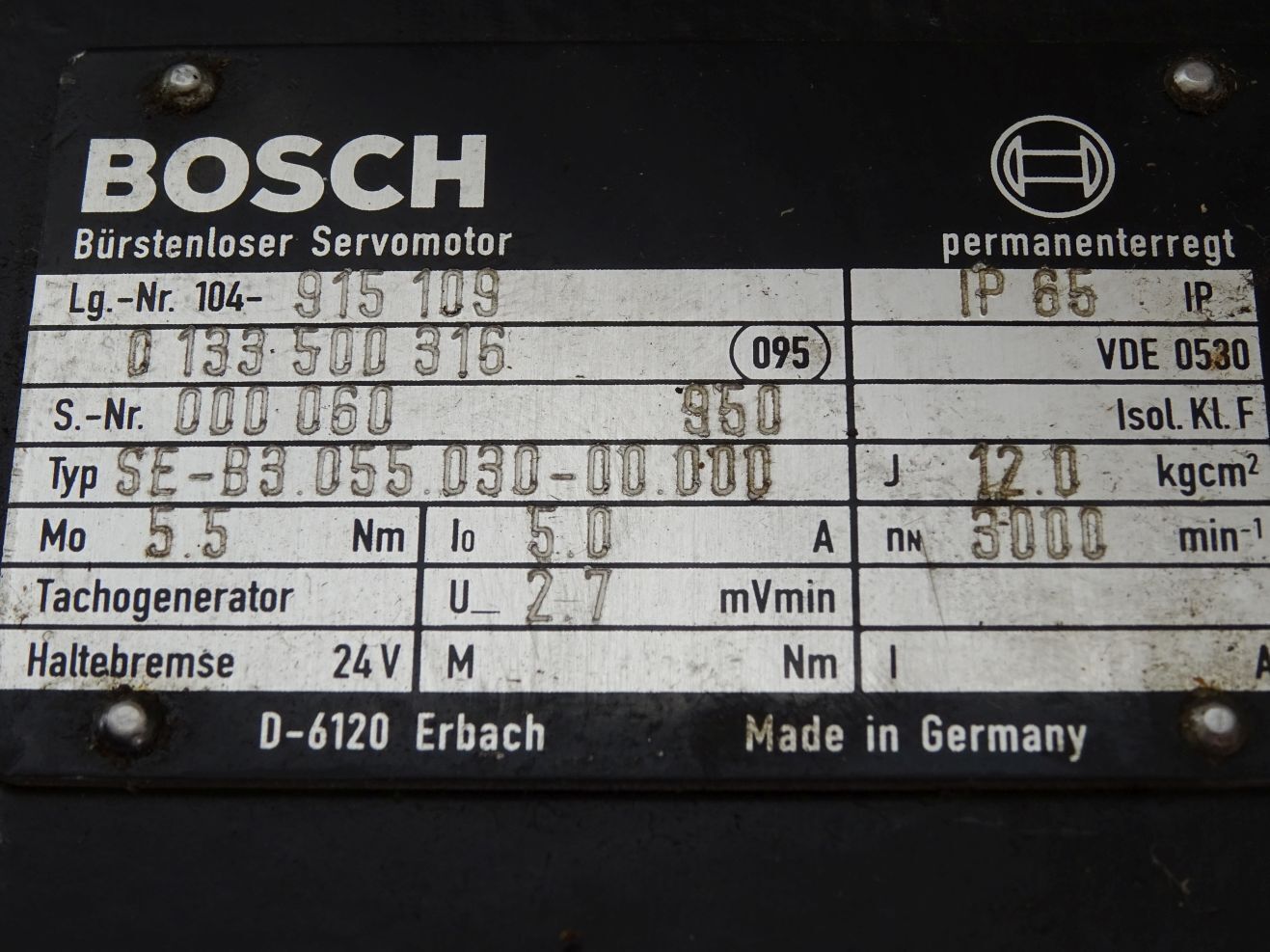 Bosch Bürstenloser Servomotor 0133500316 SE-B3.055.030-00.000 3000min-1
