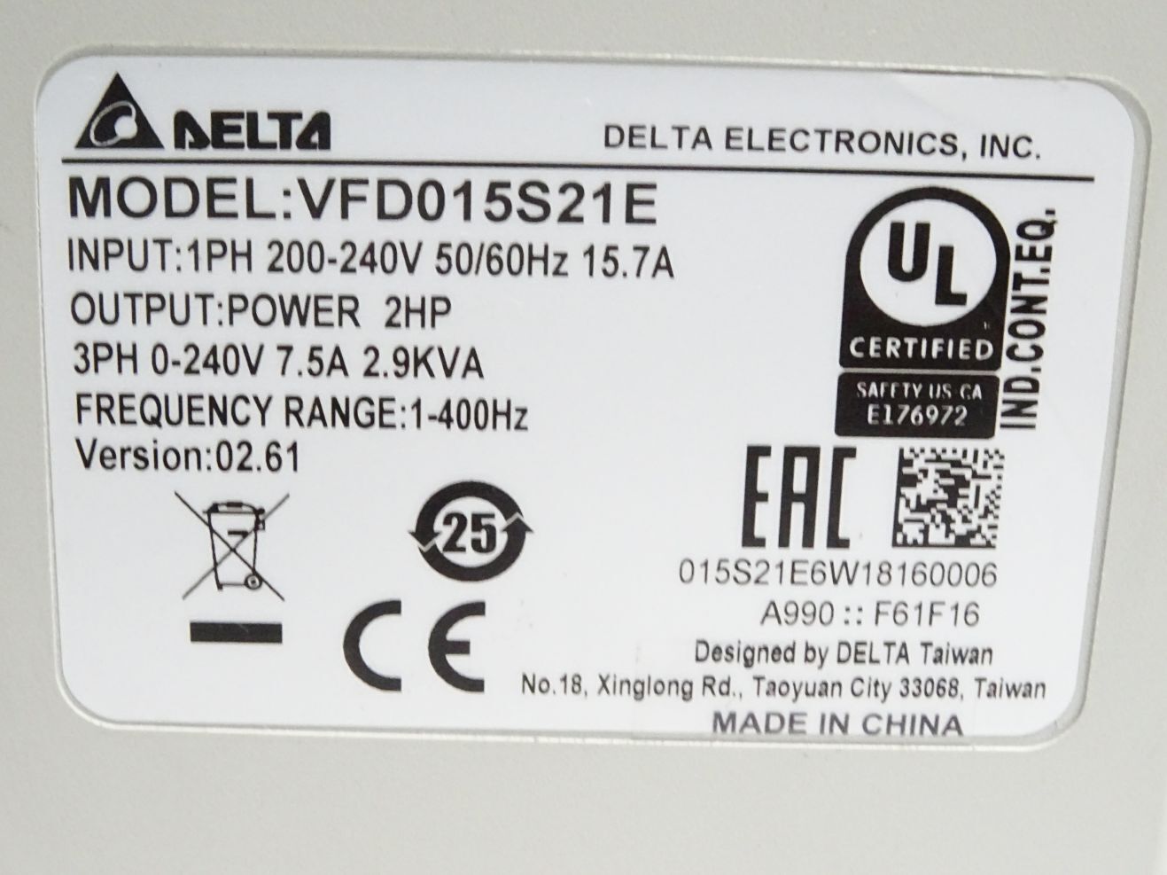 Delta S1 VFD015S21E Frequenzumrichter 1.5kW / Neuwertig