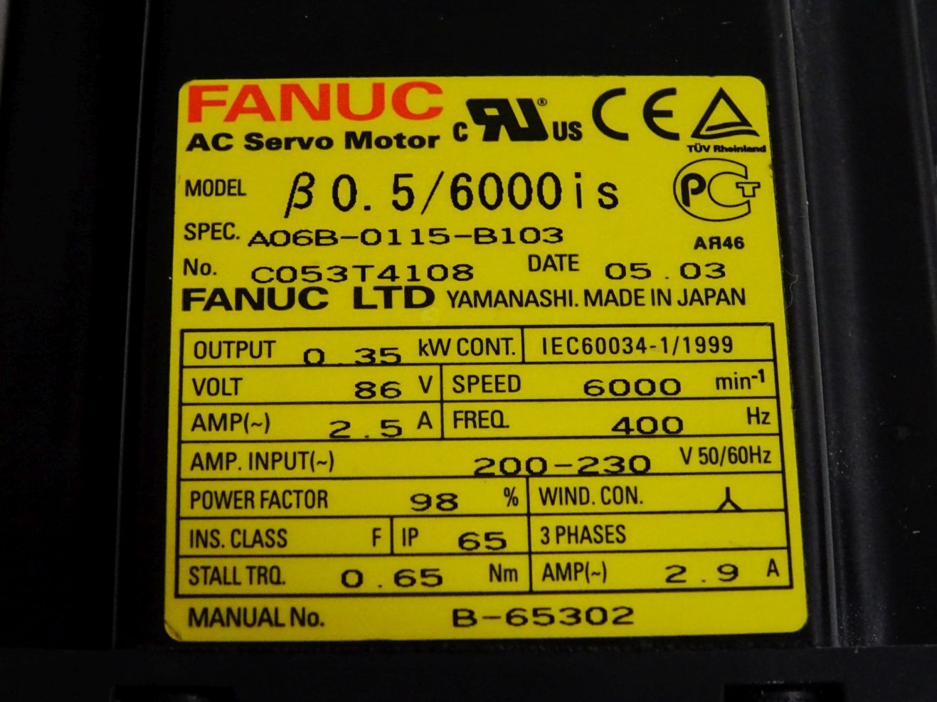 Fanuc Servomotor A06B-0115-B103 6000min-1