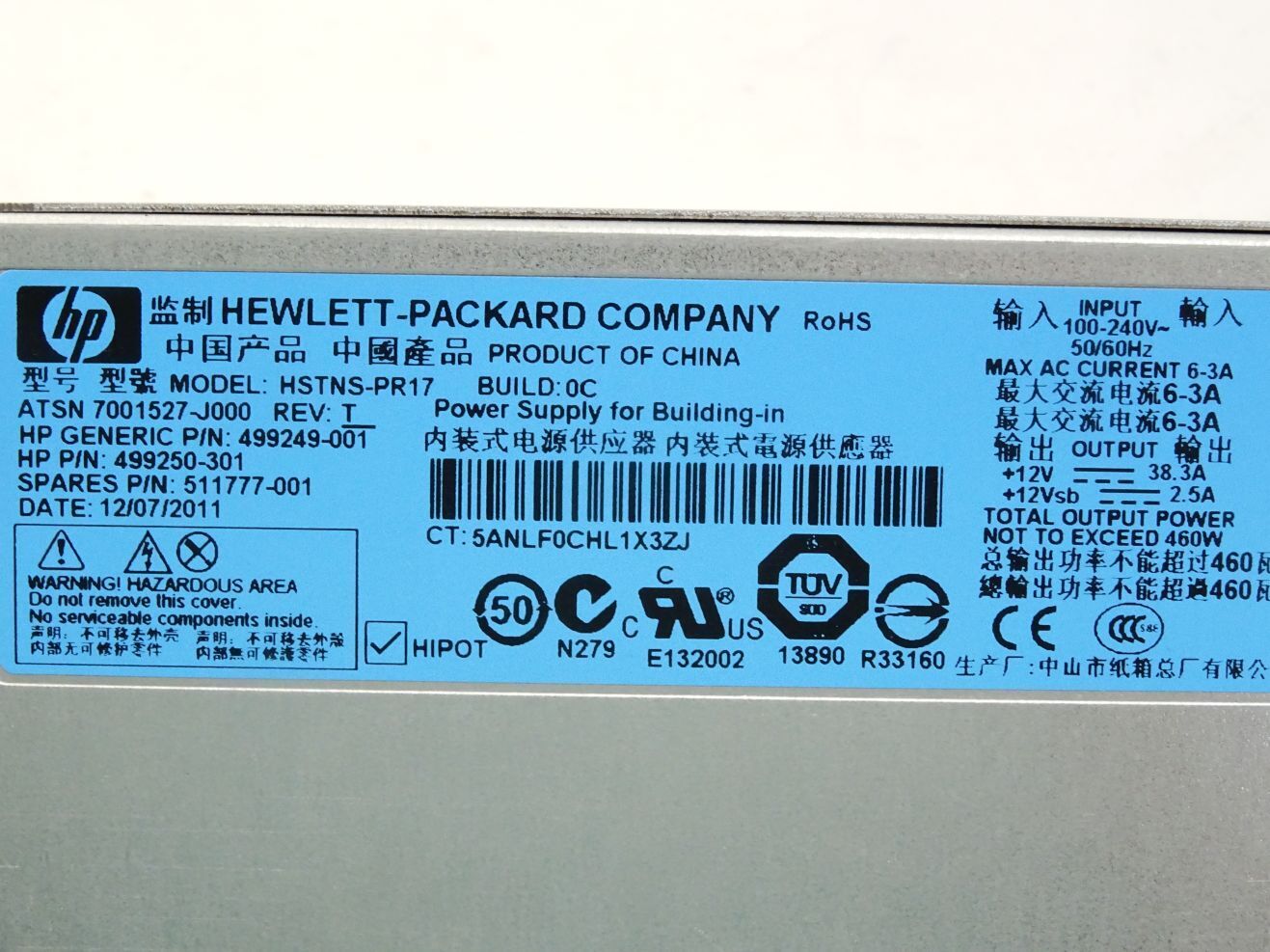 HP HSTNS-PR17 Build 0C Power Supply for Bulding-in