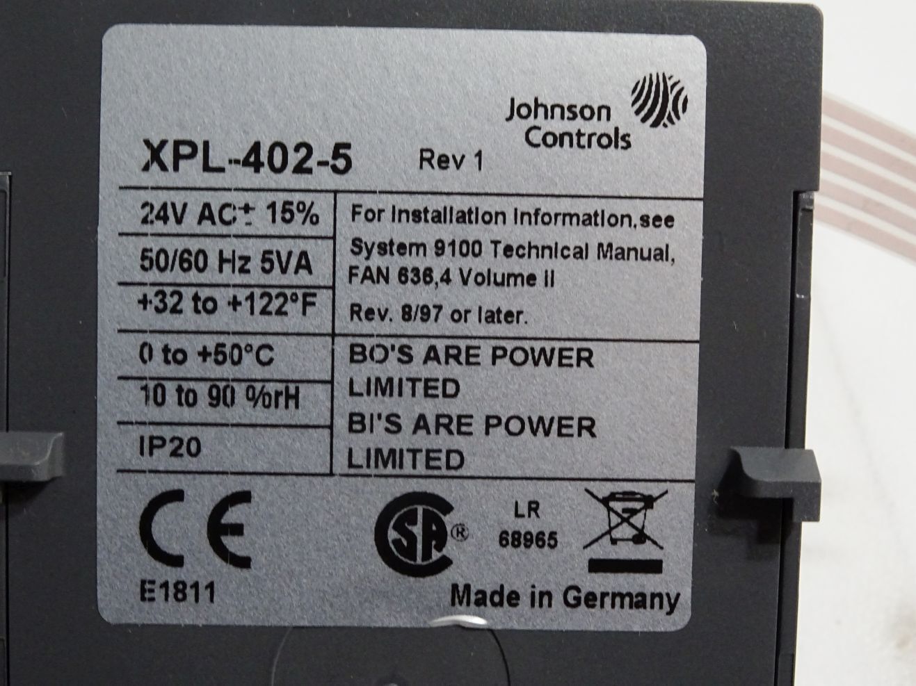 Johnson Controls XPL-402-5