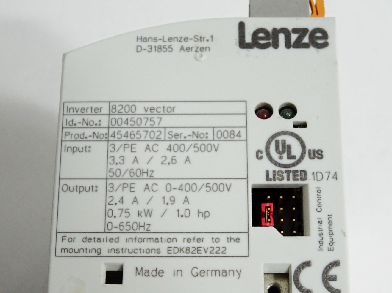 Lenze 8200 vector 00450757 E82EV751_4B E82EV751K4B 0.75kW