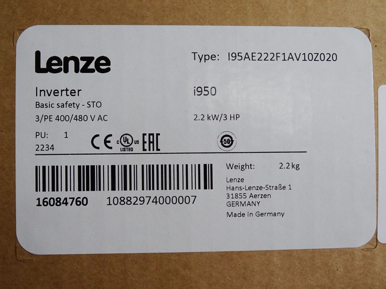 Lenze Inverter i950 2.2kW I95AE222F1AV10Z020 16084760 / Neu OVP