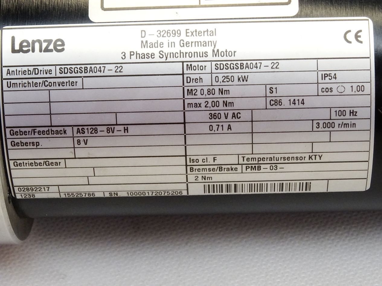 Lenze Servomotor SDSGSBA047-22 0,250kW 3000r/min