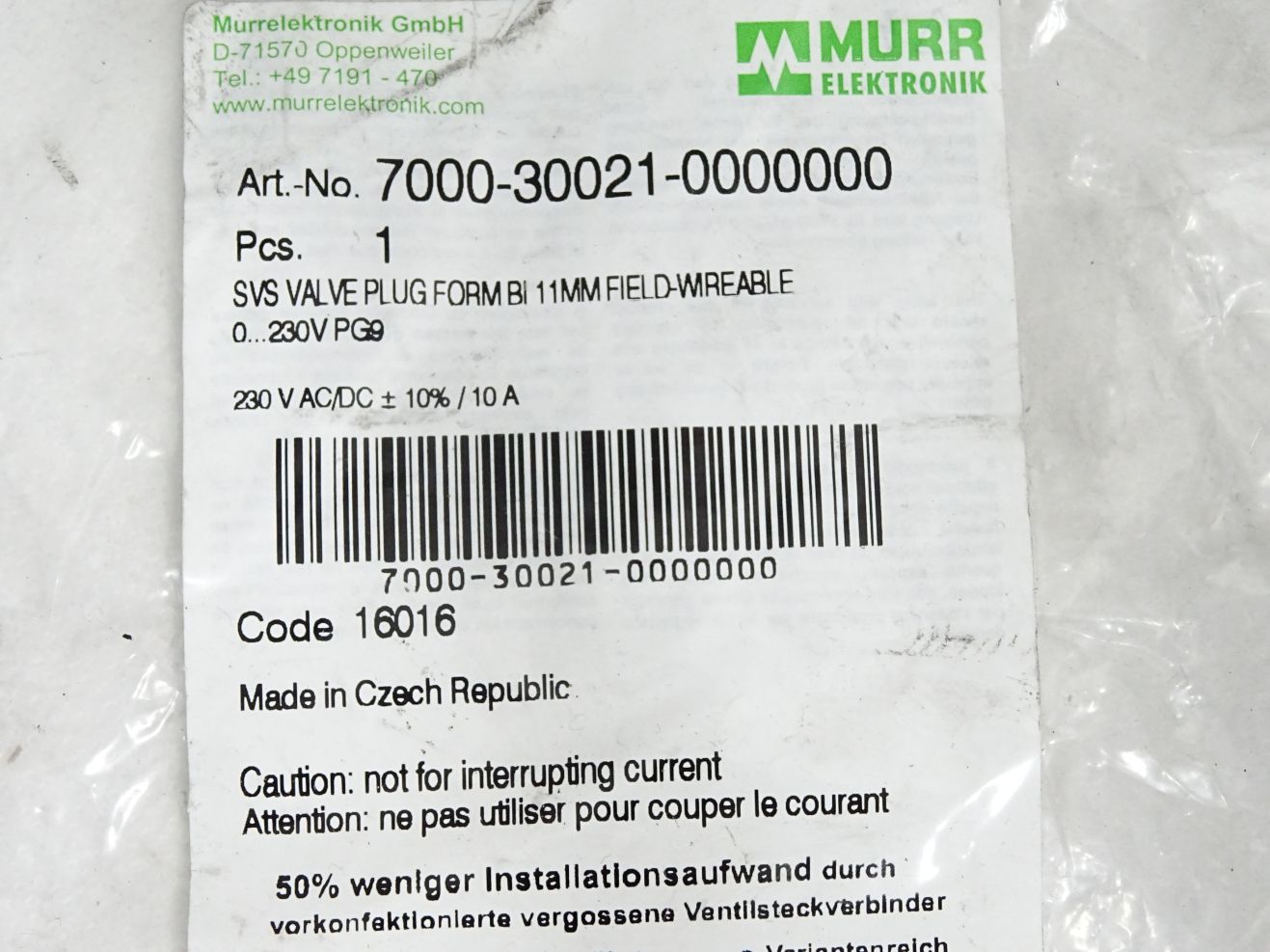Murr Elektronik 7000-30021-0000000 SVS Ventilstecker / Neu OVP