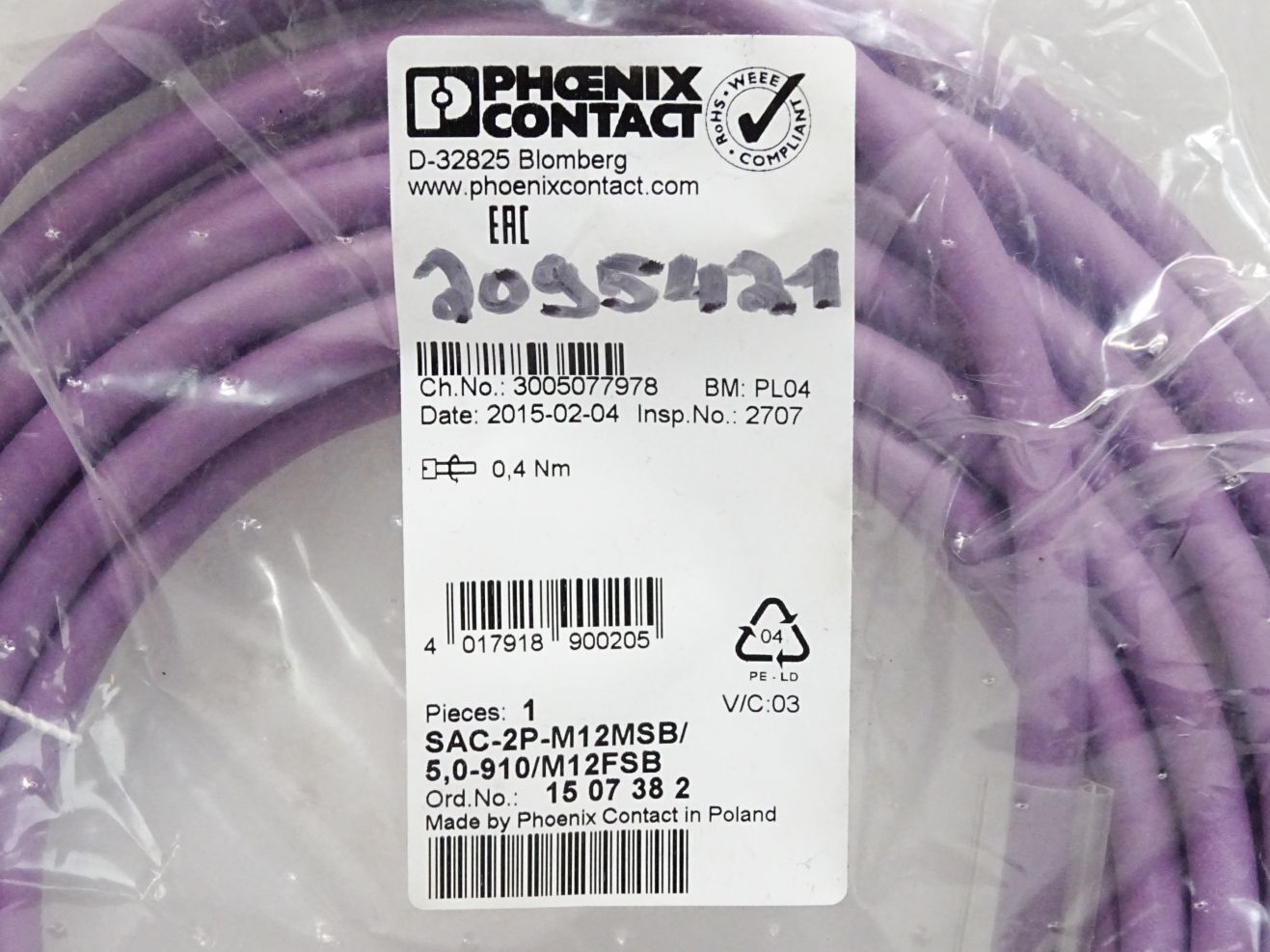 Phoenix Contact 1507382 SAC-2P-M12MSB/ 5,0-910/M12FSB Bussystem-Kabel / Neu OVP