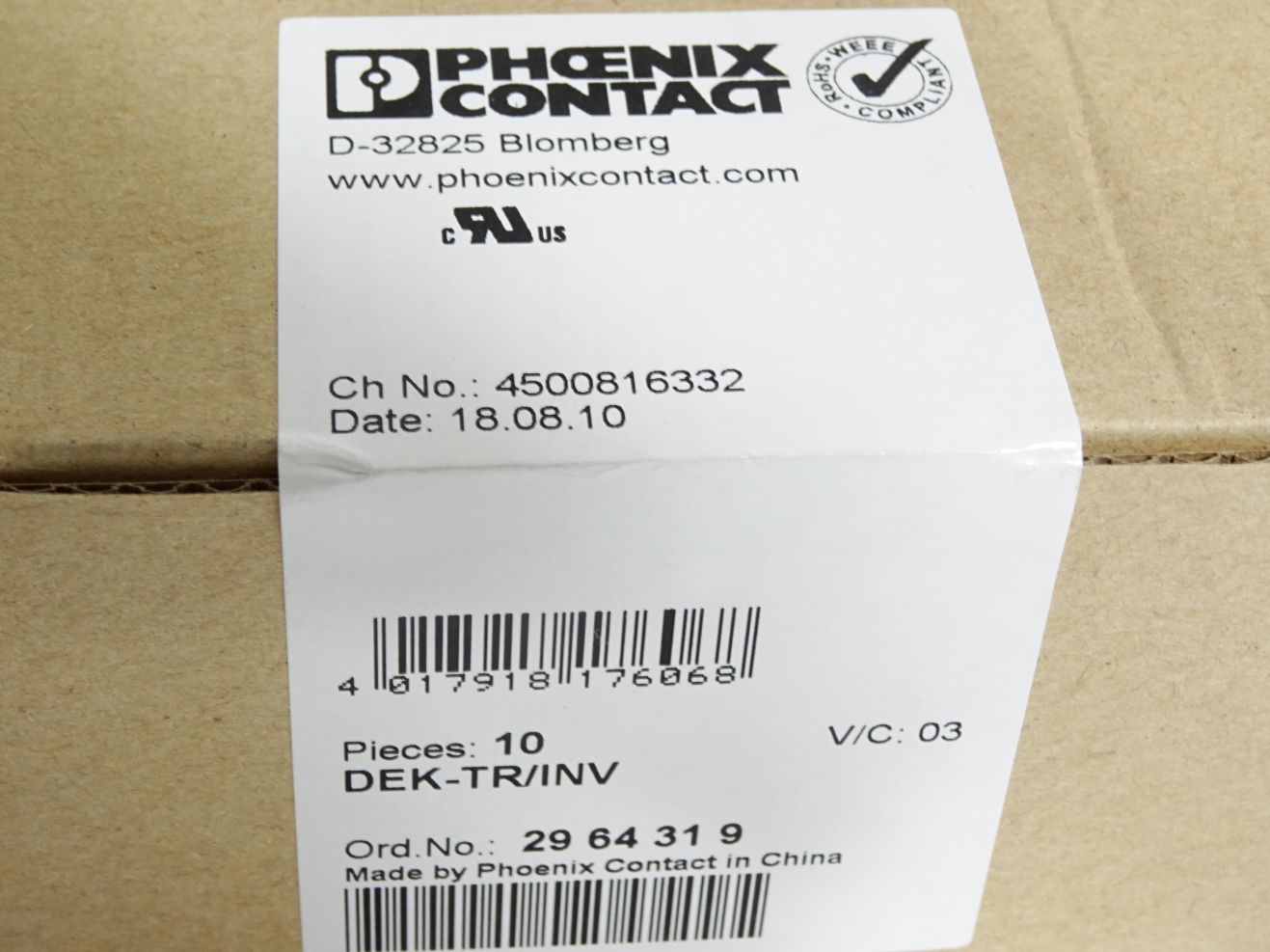Phoenix Contact 2964319 DEK-TR/INV / Inhalt:10 Stück / Neu OVP versiegelt