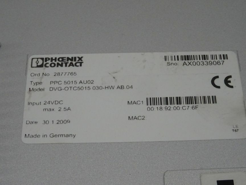 Phoenix Contact PPC 5015 AU02 Panel DVG-OTC5015 030-HW AB.04 / 2877765
