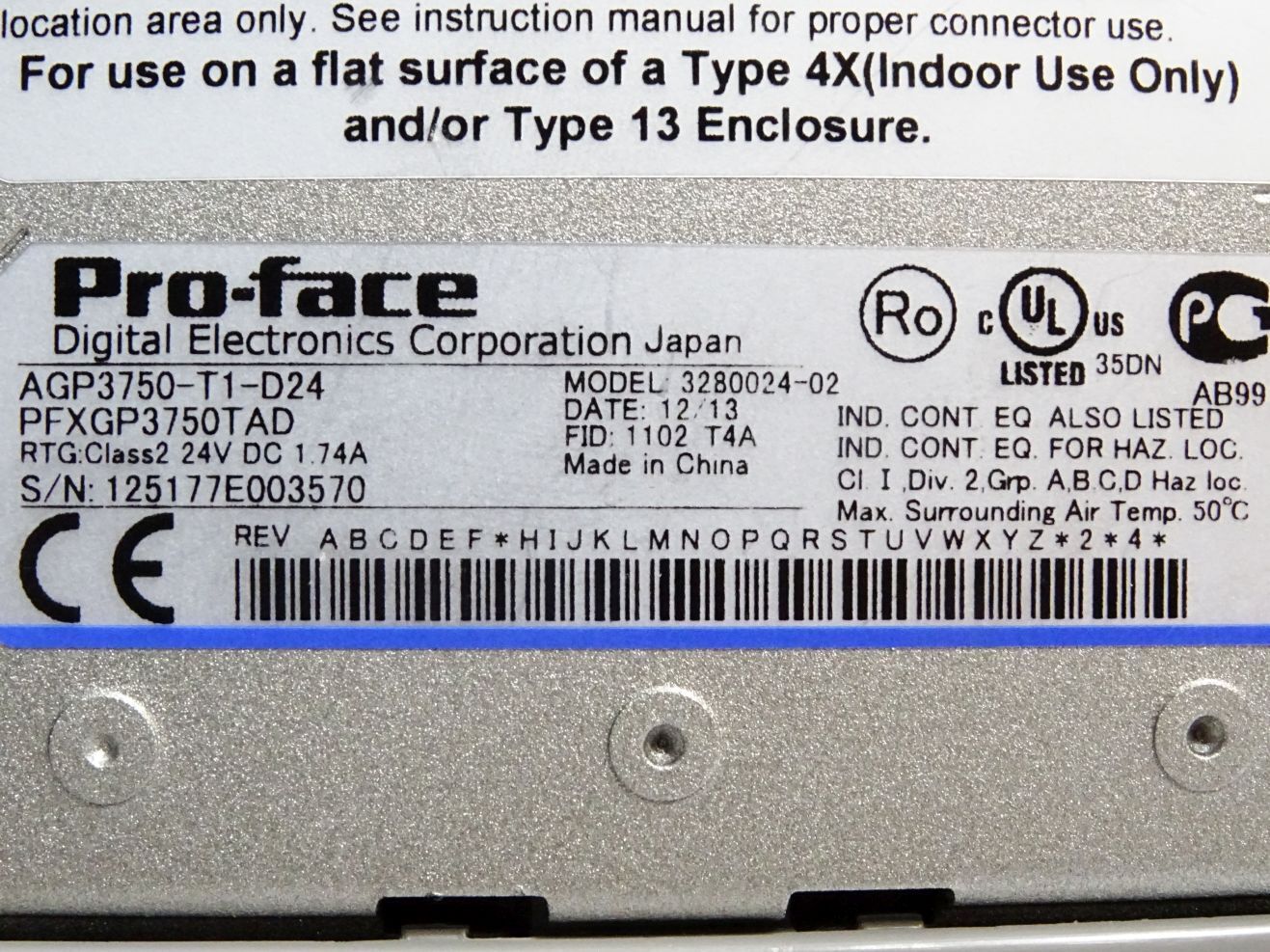 Proface 3280024-02 AGP3750-T1-D24 PFXGP3750TAD HMI Panel