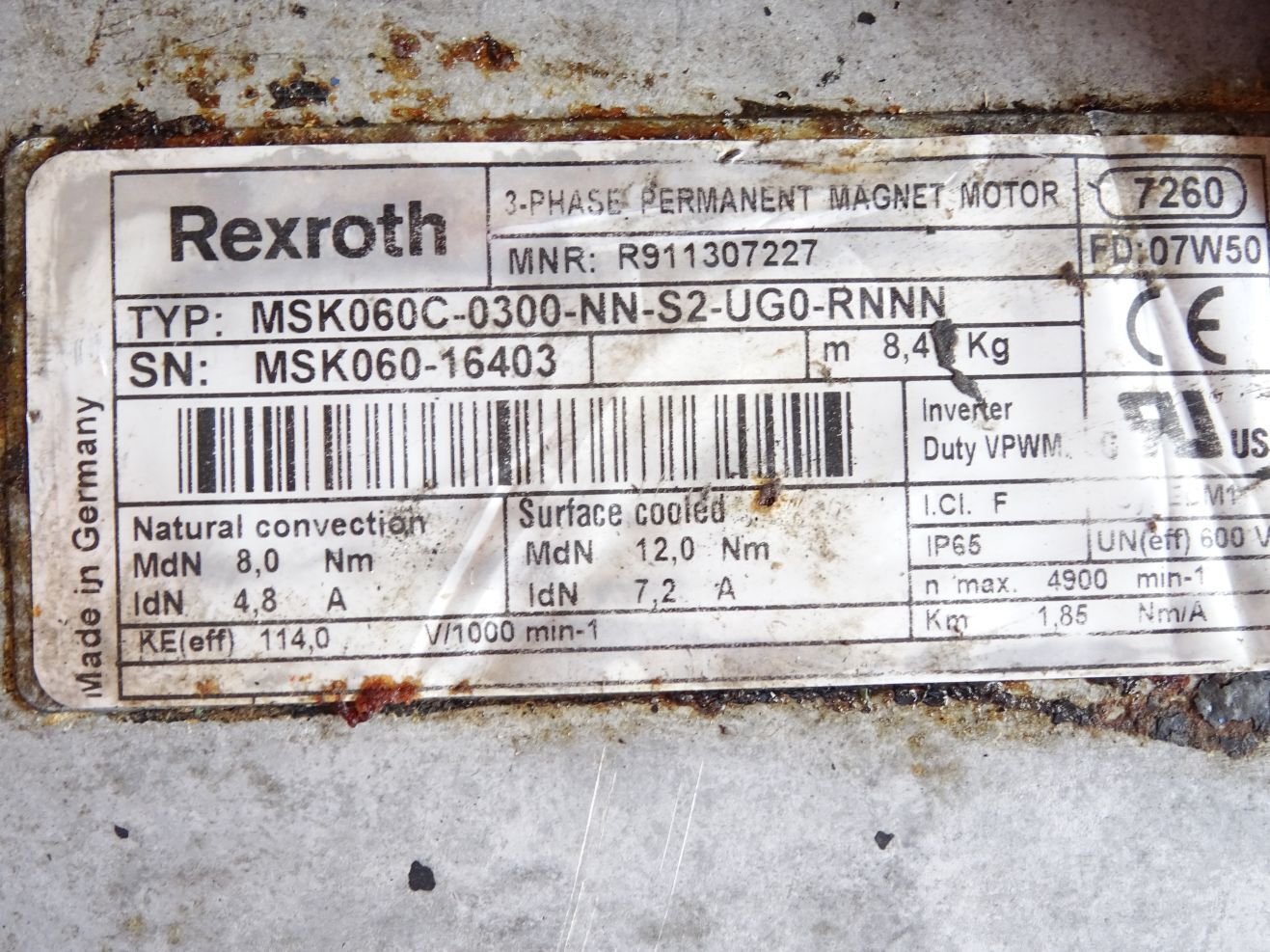 Rexroth Servomotor R911307227 MSK060C-0300-NN-S2-UG0-RNNN 4900min-1