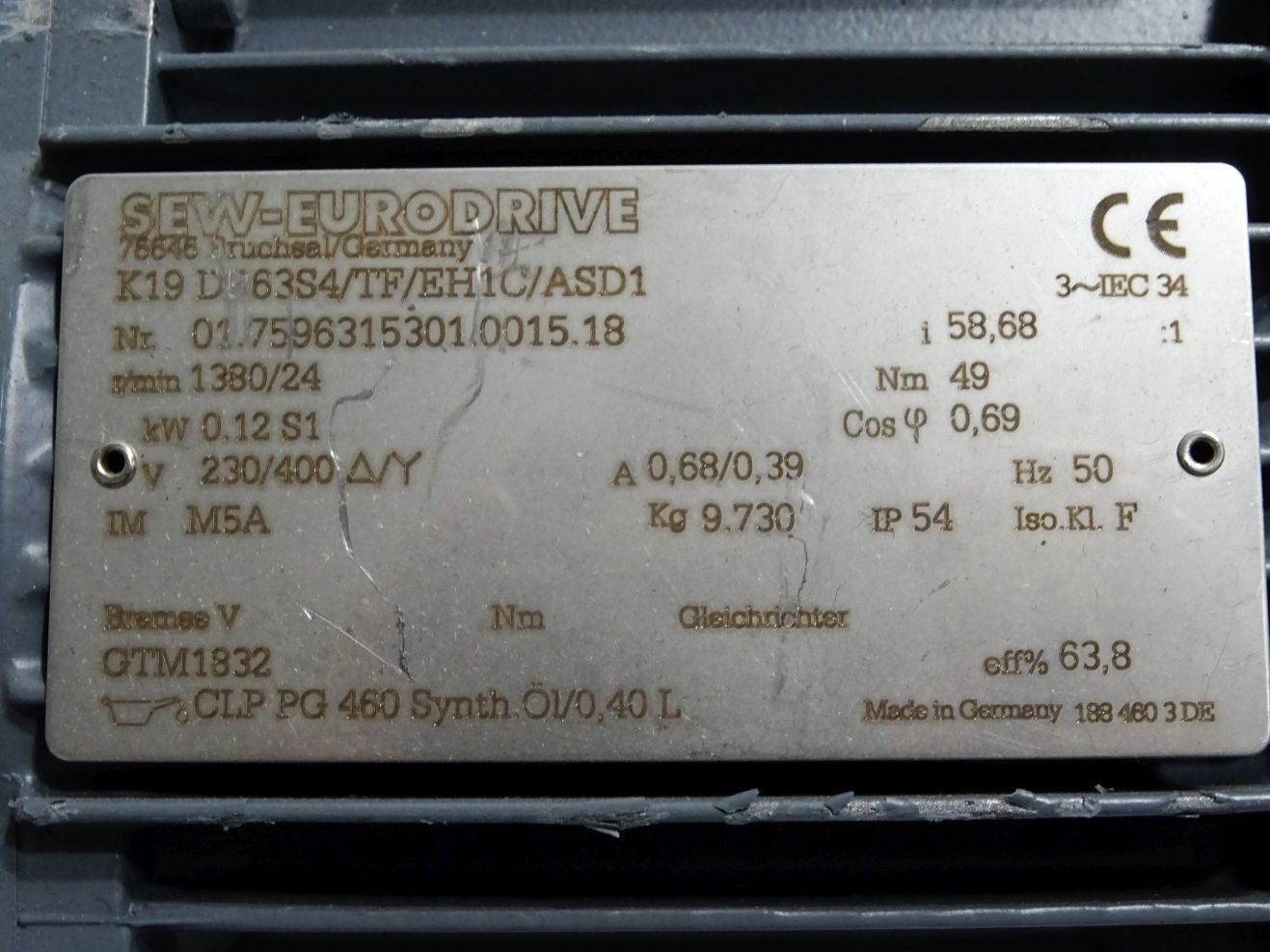 SEW Eurodrive Getriebemotor K19 DR63S4/TF/EH1C/ASD1 0.12kW 1380/24 r/min i58,68 / Unbenutzt mit Lagerpsuren