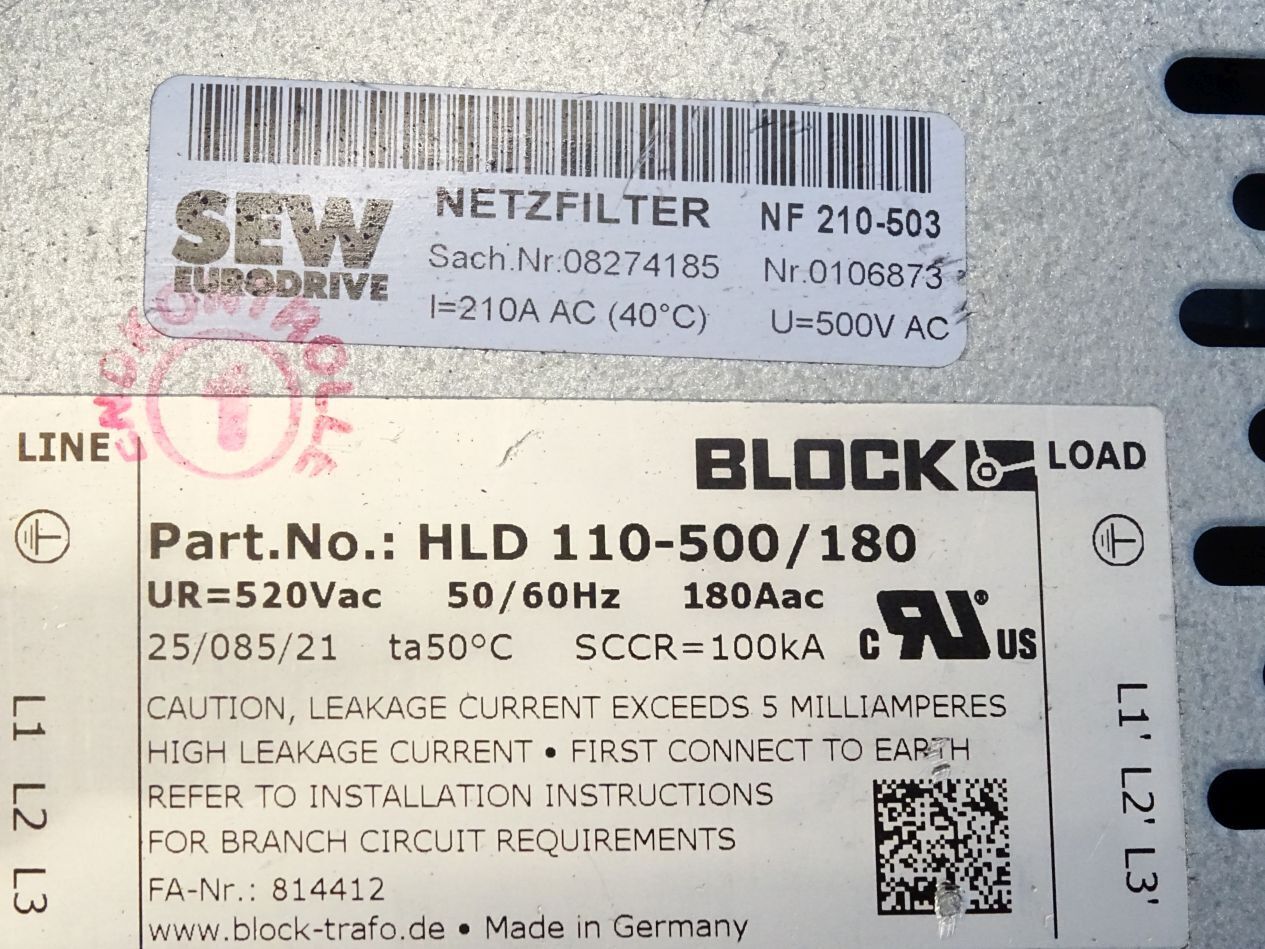 SEW Eurodrive Netzfilter NF210-503 / 0106873 / Block load HLD110-500/180