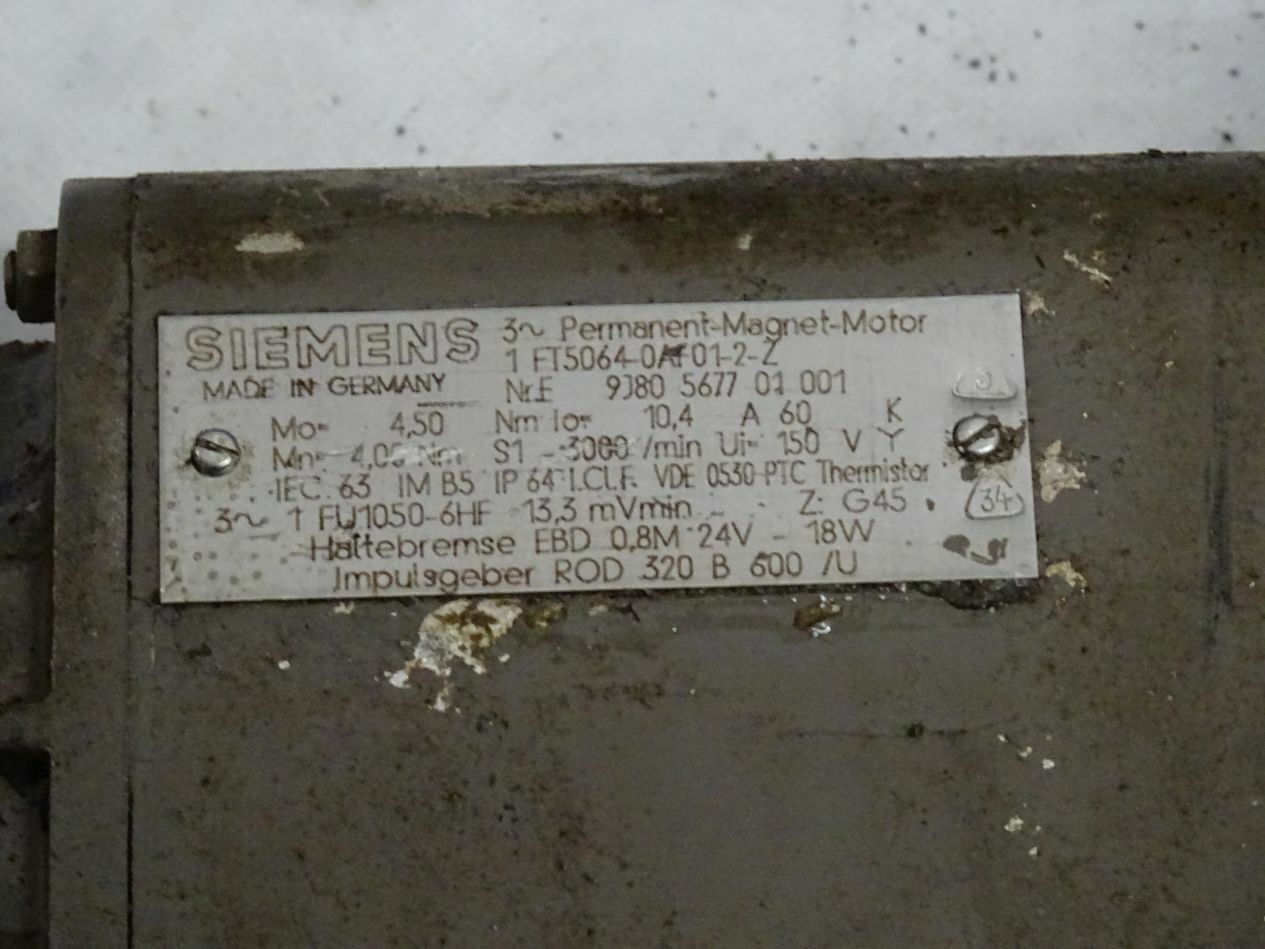 Siemens 1FT5064-0AF01-2-Z Permanent Magnet Motor 3000Rpm / 1 FT5064-0AF01-2-Z