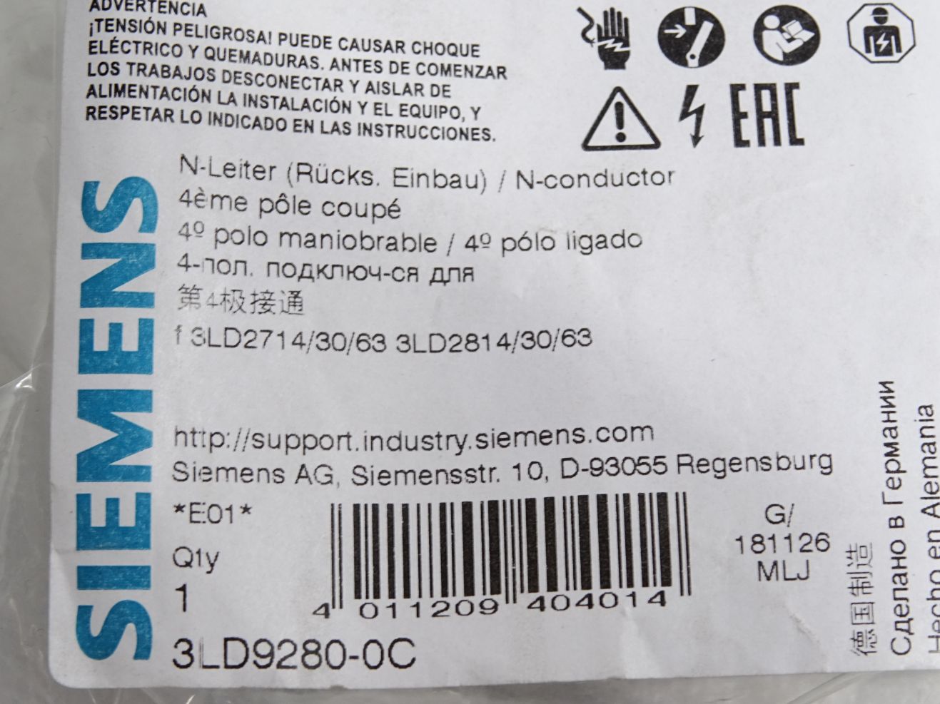 Siemens 3LD9280-0C N-Leiter 3LD2714/30/63 / Neu OVP