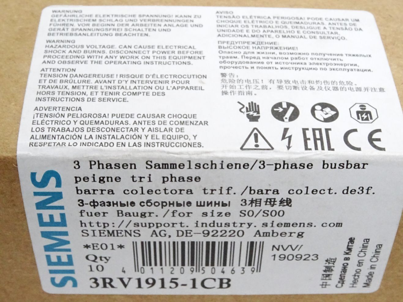 Siemens 3RV1915-1CB Inhalt : 10 Sammelschiene / Neu OVP