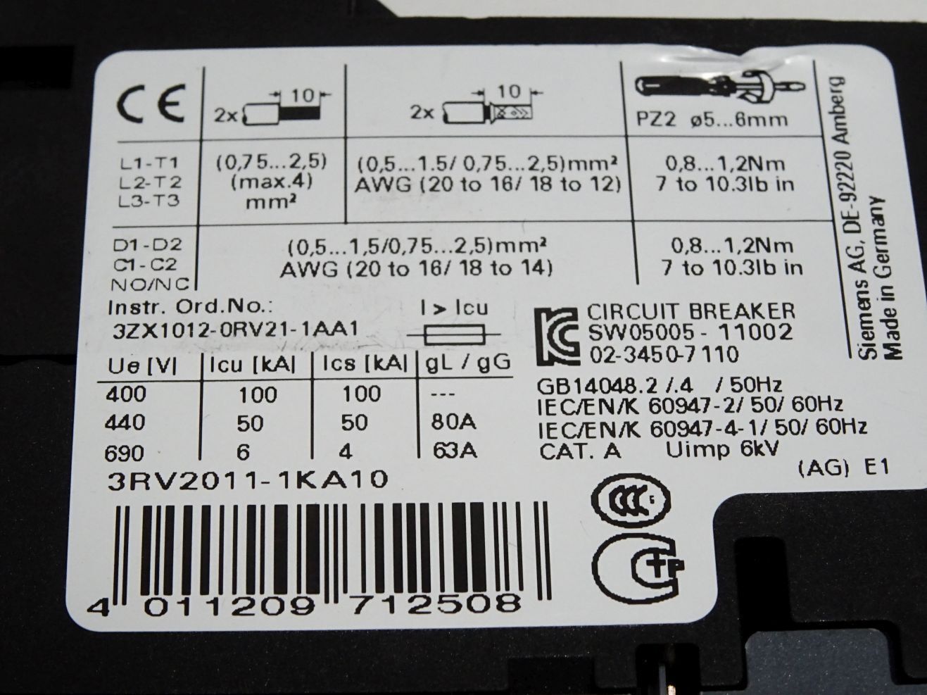 Siemens 3RV2011-1KA10 Leistungsschalter