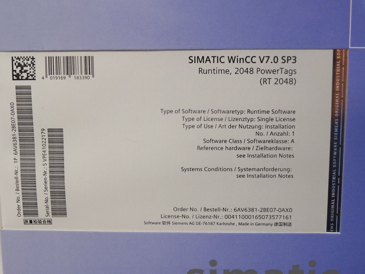 Siemens 6AV6381-2BE07-0AX0 6AV6 381-2BE07-0AX0 WinCC system software V7.0 SP3 Neu OVP