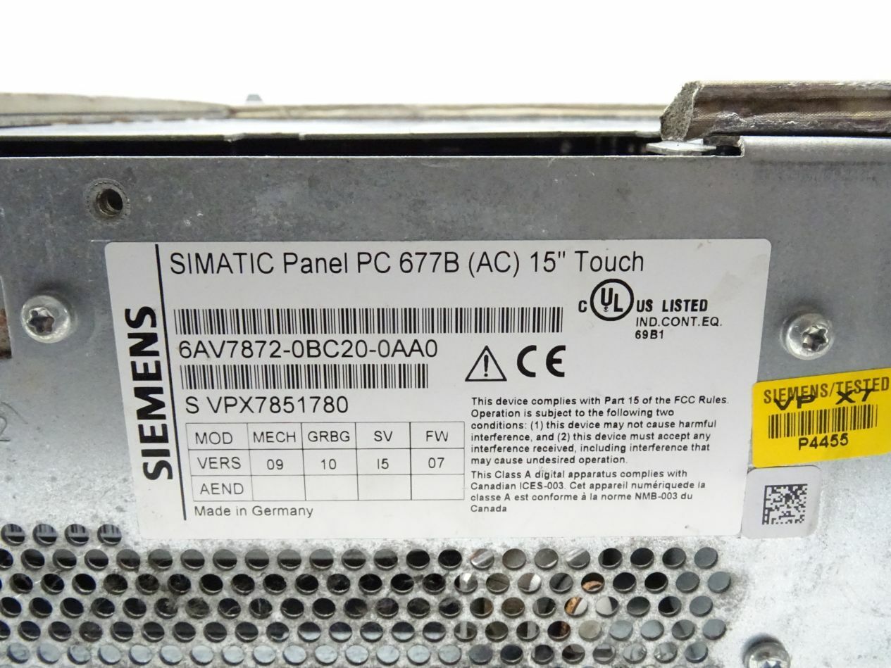 Siemens 6AV7872-0BC20-0AA0 Simatic 6AV7 872-0BC20-0AA0 Panel PC 677B