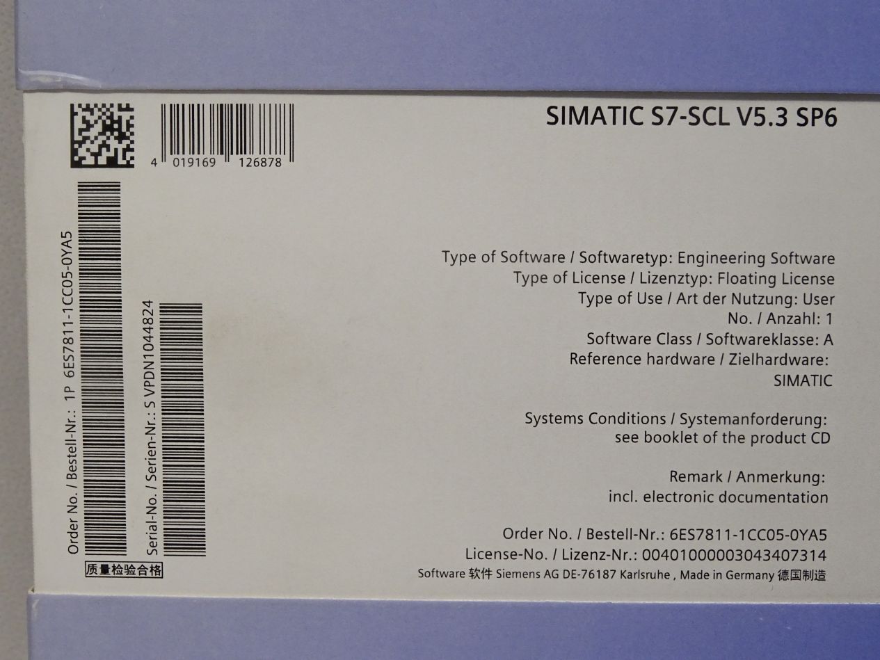 Siemens 6ES7811-1CC05-0YA5 6ES7 811-1CC05-0YA5 S7-SCL V5.3 (mit License Key) / Neu OVP