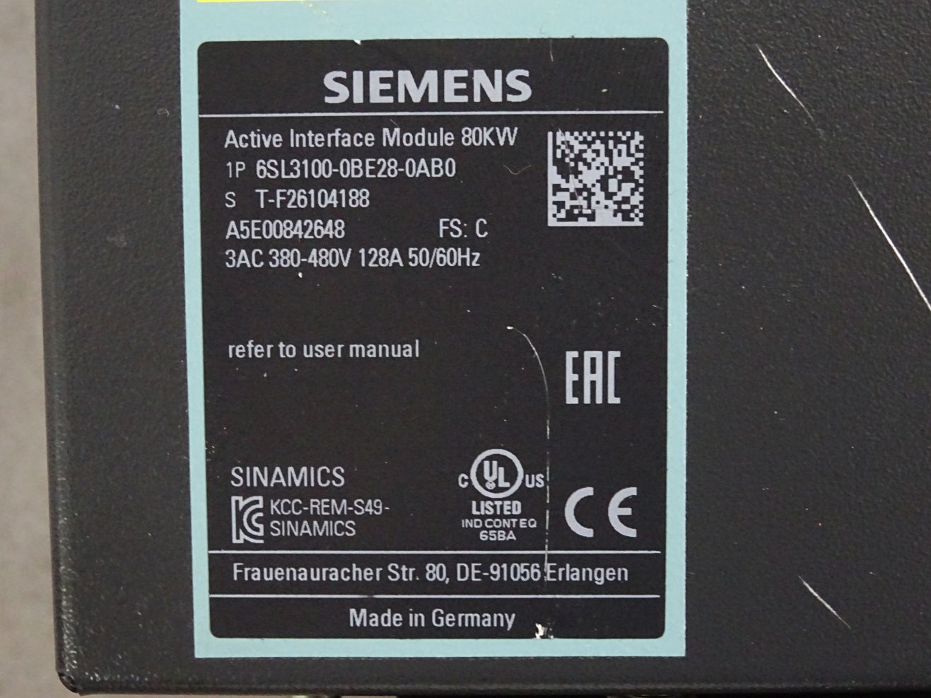 Siemens Active Interface Module 6SL3100-0BE28-0AB0 80kW
