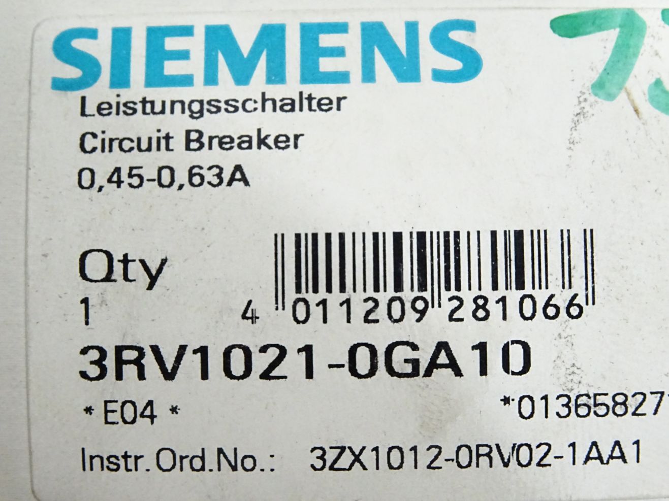 Siemens Leistungsschalter 3RV1021-0GA10 / Neu OVP