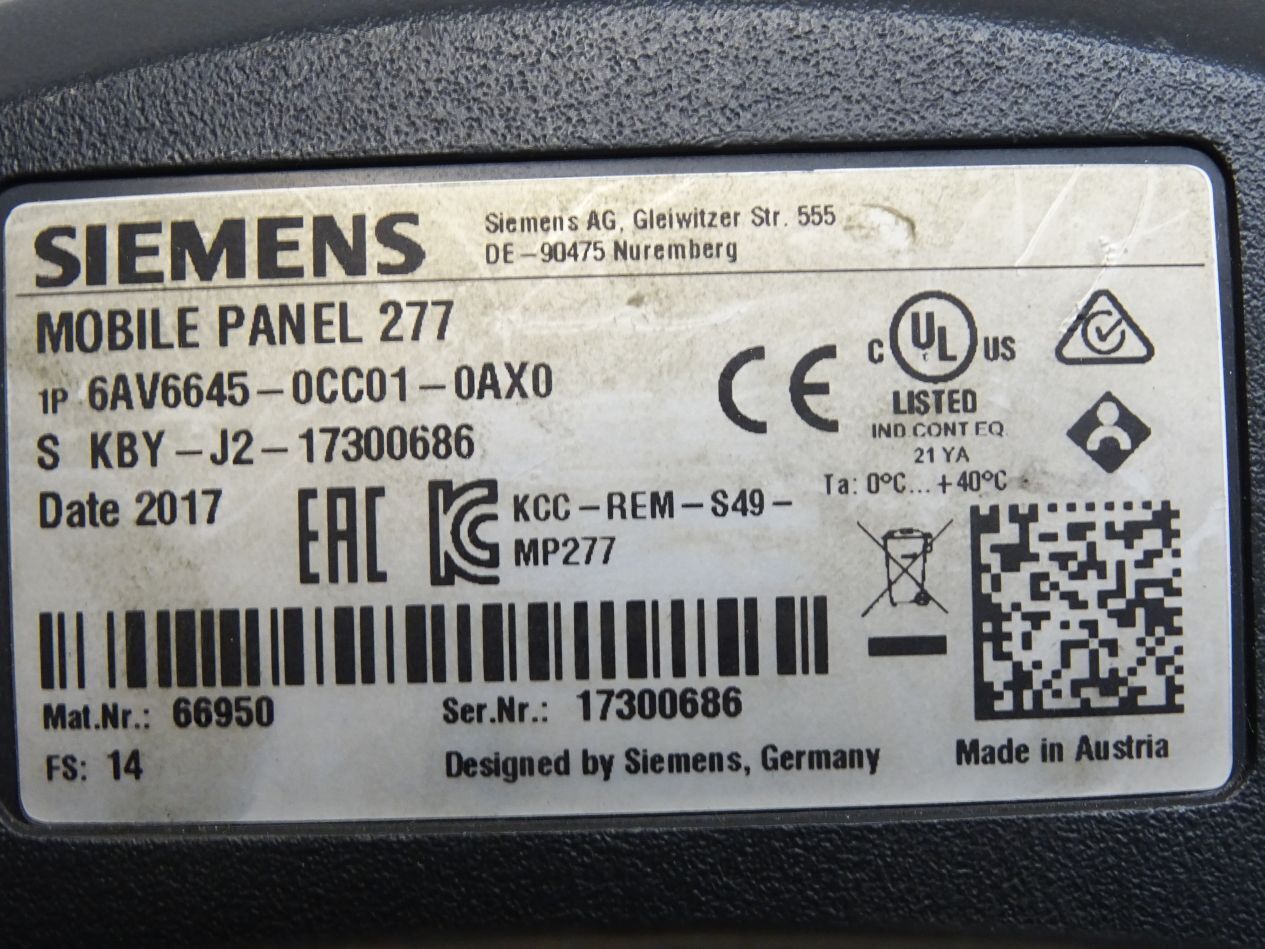 Siemens Mobile Panel 277 6AV6645-0CC01-0AX0 6AV6 645-0CC01-0AX0