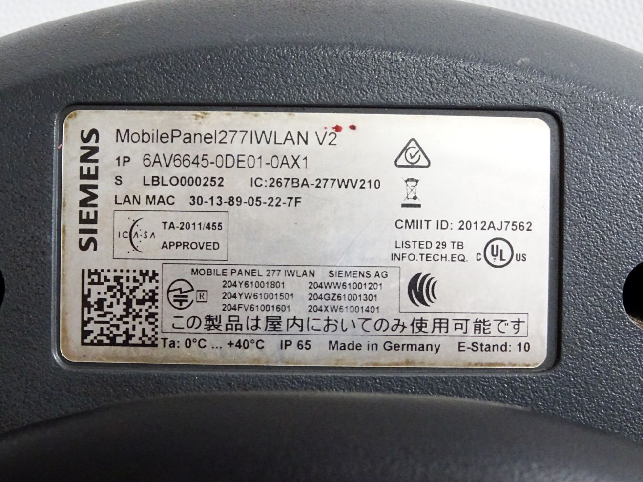 Siemens Mobile Panel 277 IWLAN 6AV6645-0DE01-0AX1 + 6AV6671-5CL00-0AX1
