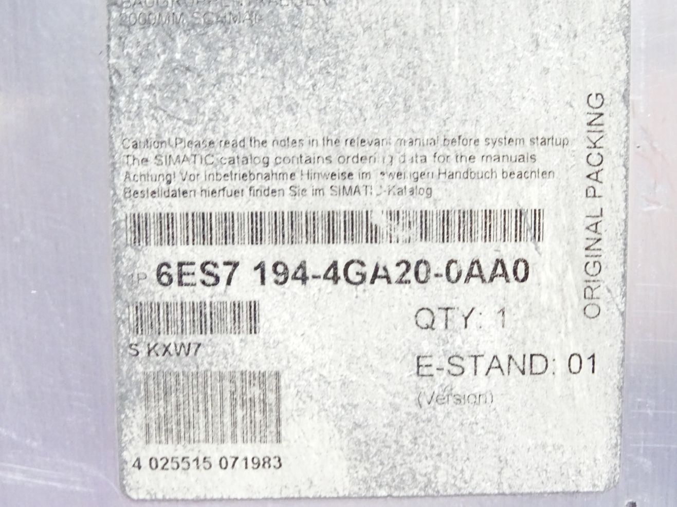 Siemens Modulträger 6ES7194-4GA20-0AA0 6ES7 194-4GA20-0AA0