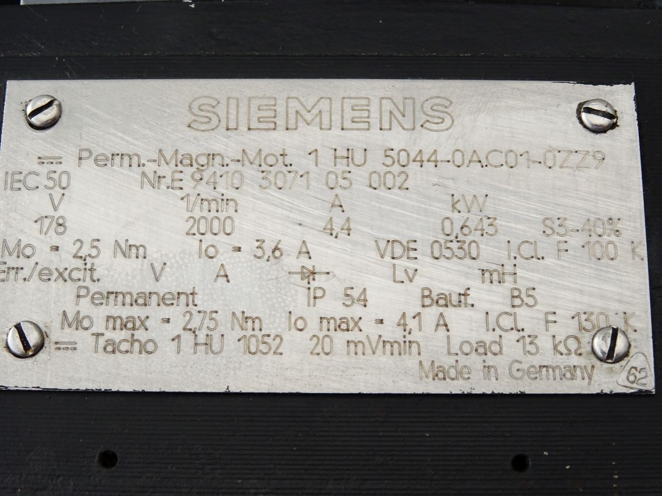 Siemens Permanent Magnet Motor Servomotor 2000min-1 1HU5044-0AC01-0ZZ9 2000 min-1